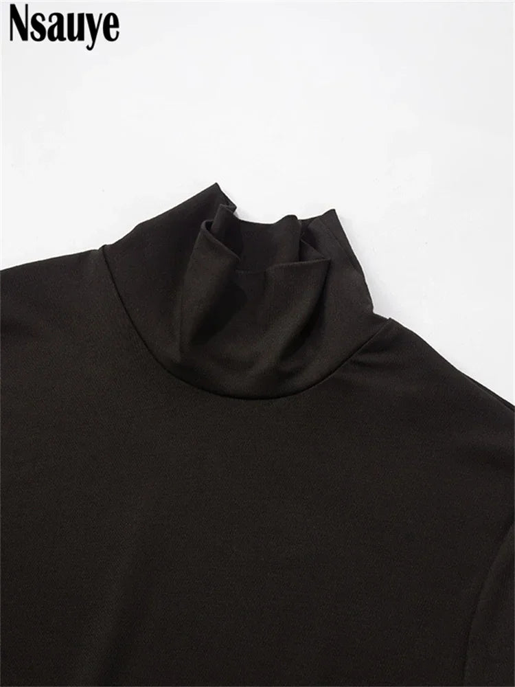 minus Pullover Turtleneck Long Sleeve Women Fashion Low Waisted Sexy Club Dress Party Elegant Maxi Ruched Dress Autumn
