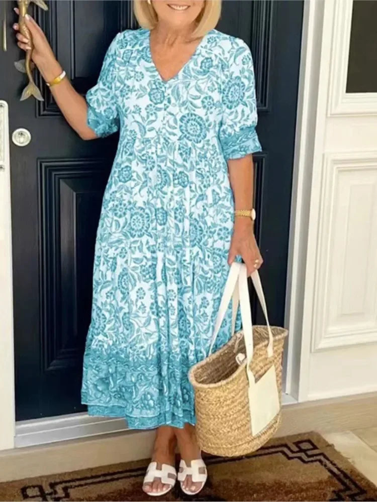 Summer Floral Print Dress For Women Casual Loose Elegant Beach Party Maxi Dresses Robe Femme Fashion Female New Vestidos 2024