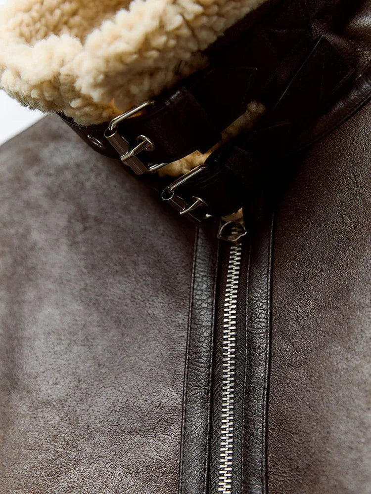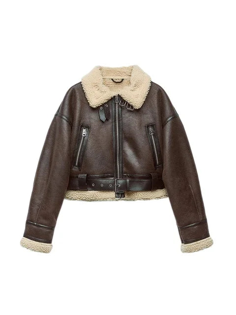 Ailegogo Autumn Winter Women Warm Loose Faux Lamb Fur Short Coat Streetwear Female Retro Zipper Spliced Coat Outwear