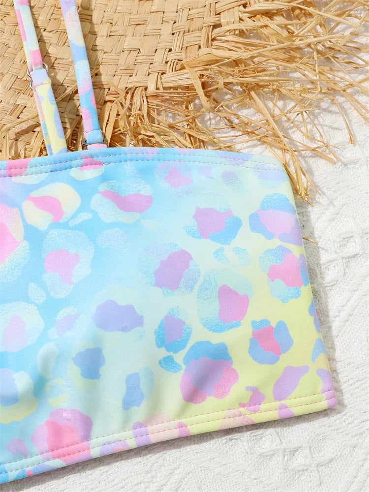 Bikini Girls Swimsuit 2024 New Gradient Sling Children Bikinis Set Three Piece Swimwear Summer Beach Wear Swimming Bathing Suit