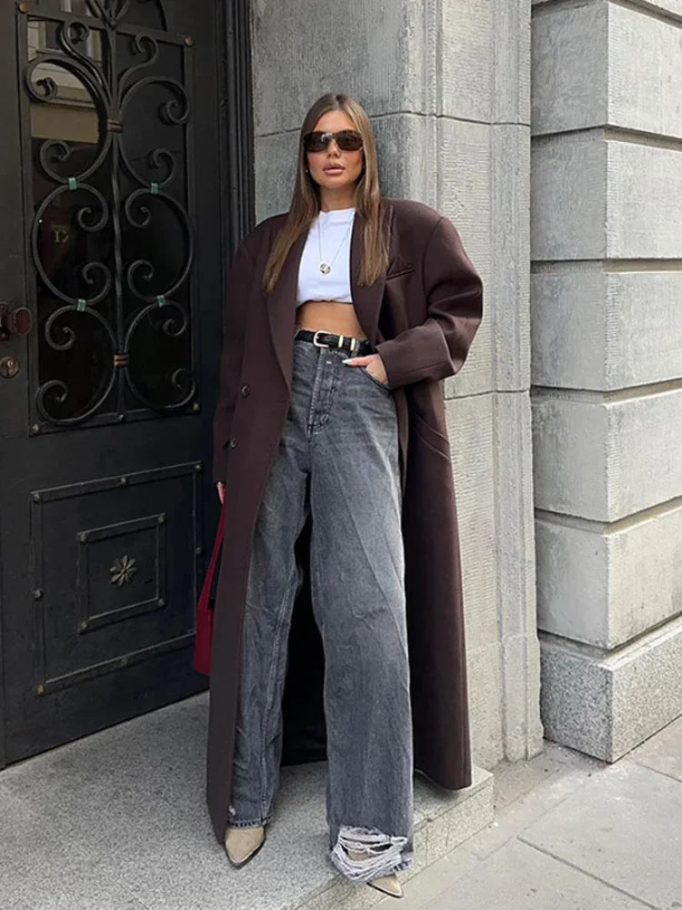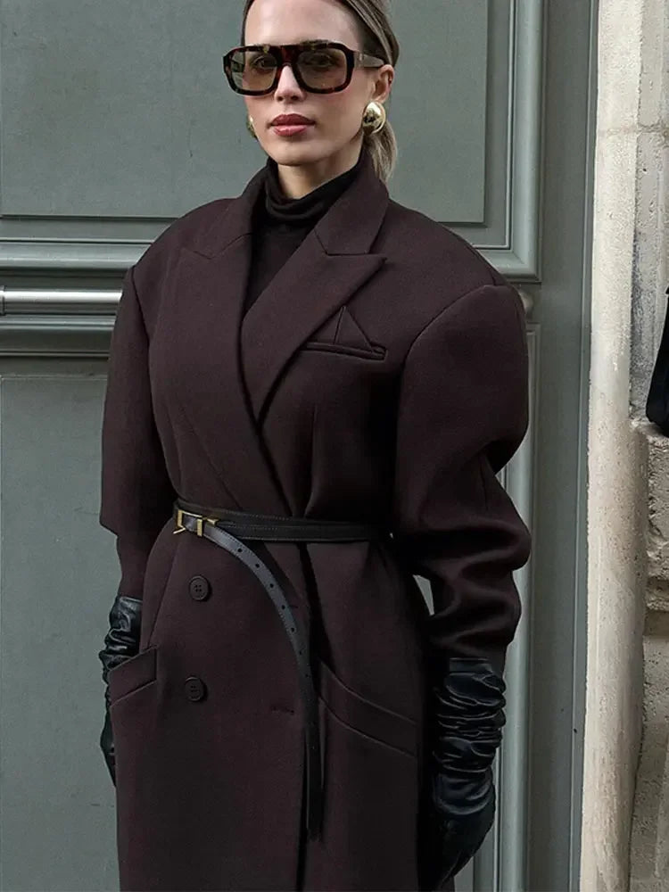 Chic Classic Lapel Woolen Overcoat For Women Elegant Double-breasted Long Sleeve Oversized Coat 2024 Lady Fashion Fall Outerwear