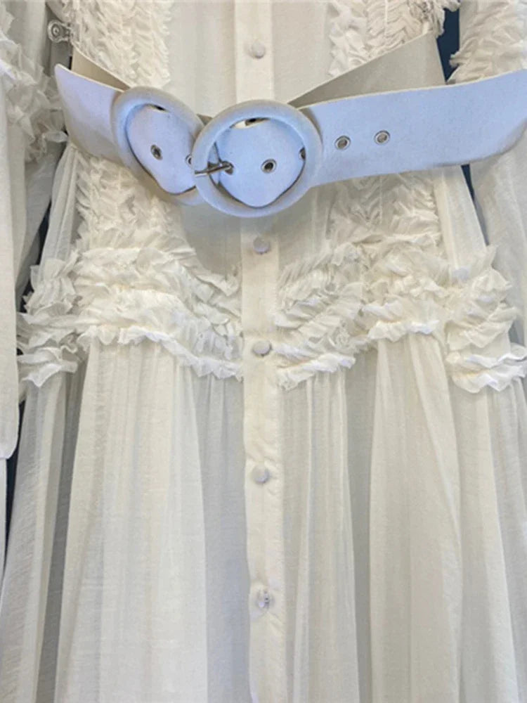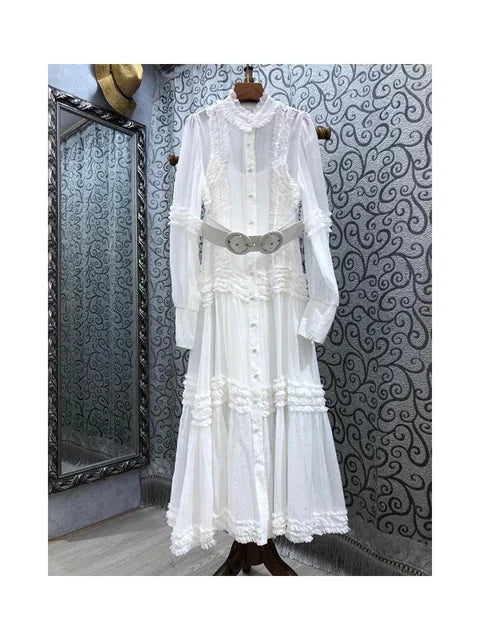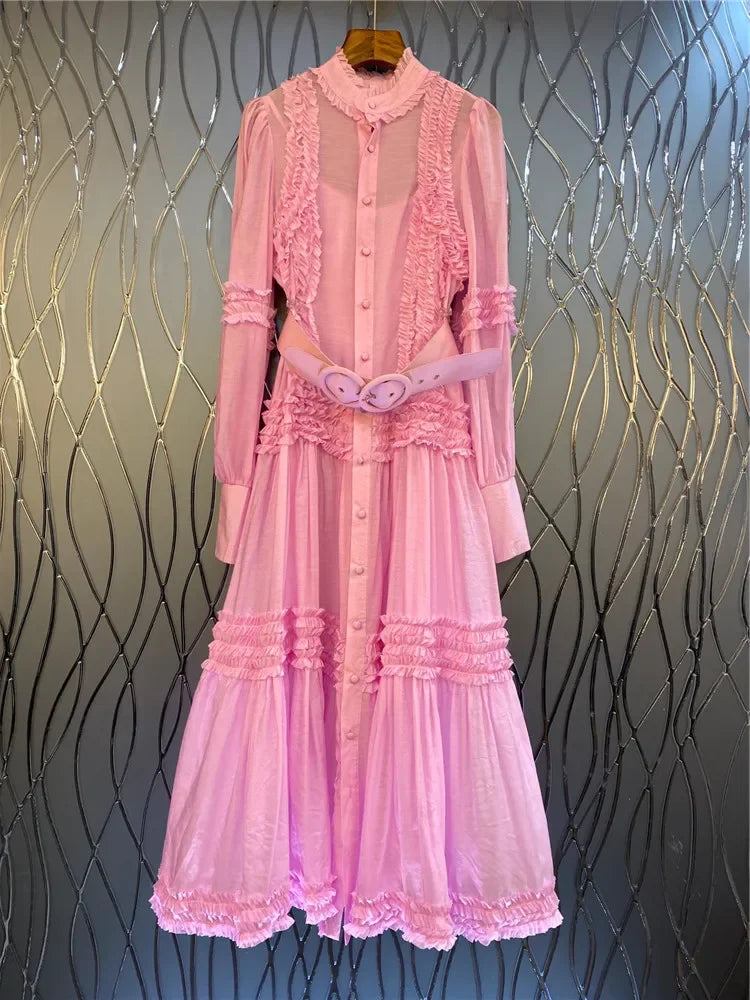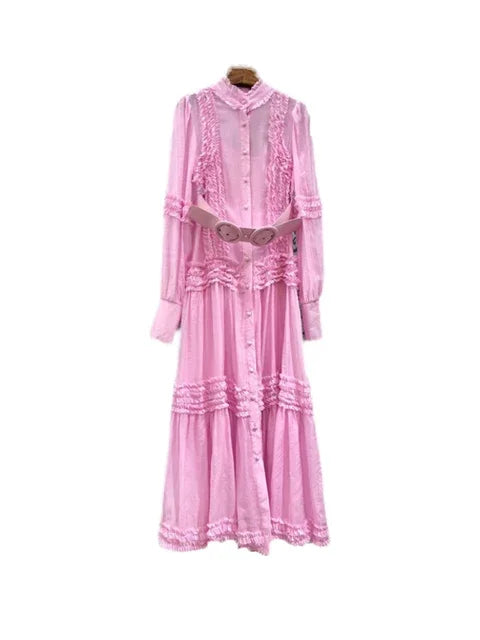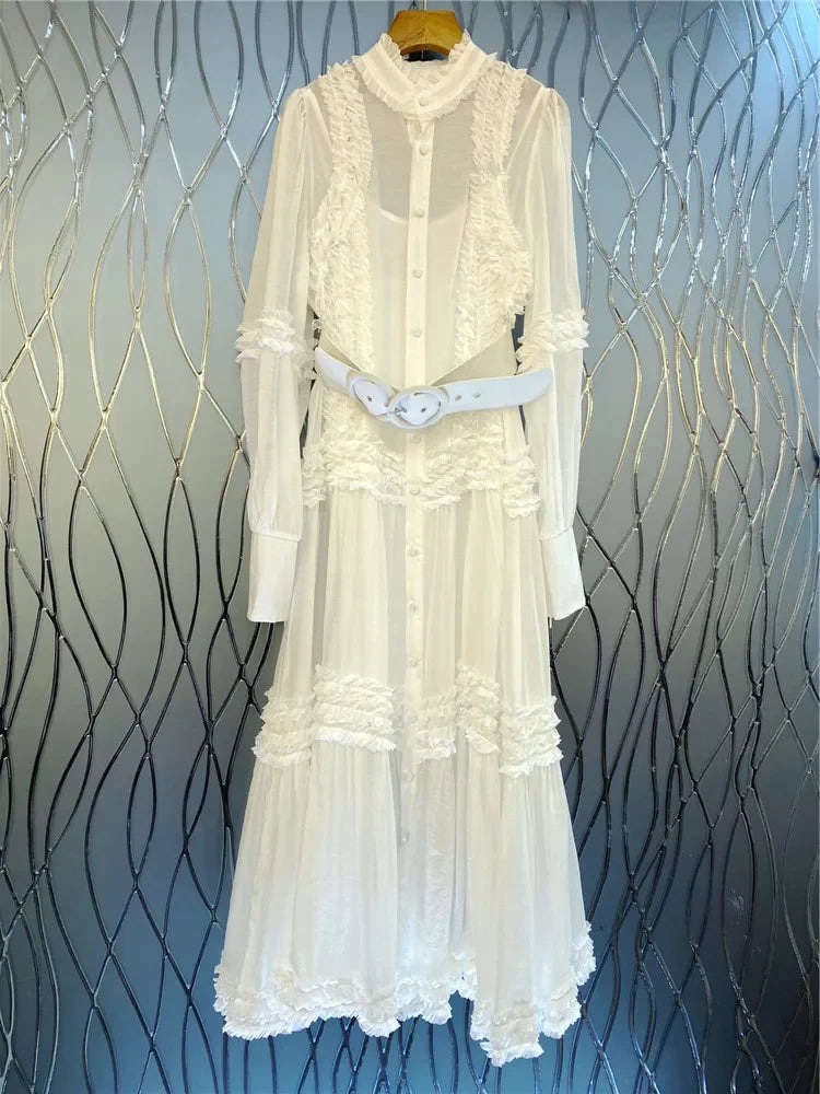 plus High Quality Fashion 2024 Women's Long Sleeve Cascading Ruffles Belted Holiday Long Dress with Camis