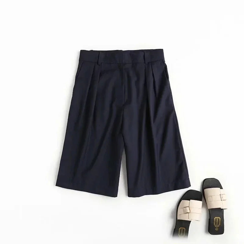 Maxdutti summer england solid simple navy shorts women color straight suits short feminino bermuda Cropped trousers