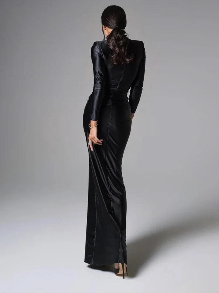 plus Silk Fold Dresses For Women Fashion Sexy Streetwear Solid Full Sleeves O-Neck Bodycone Party Elegant Long Vestidos Robes Female