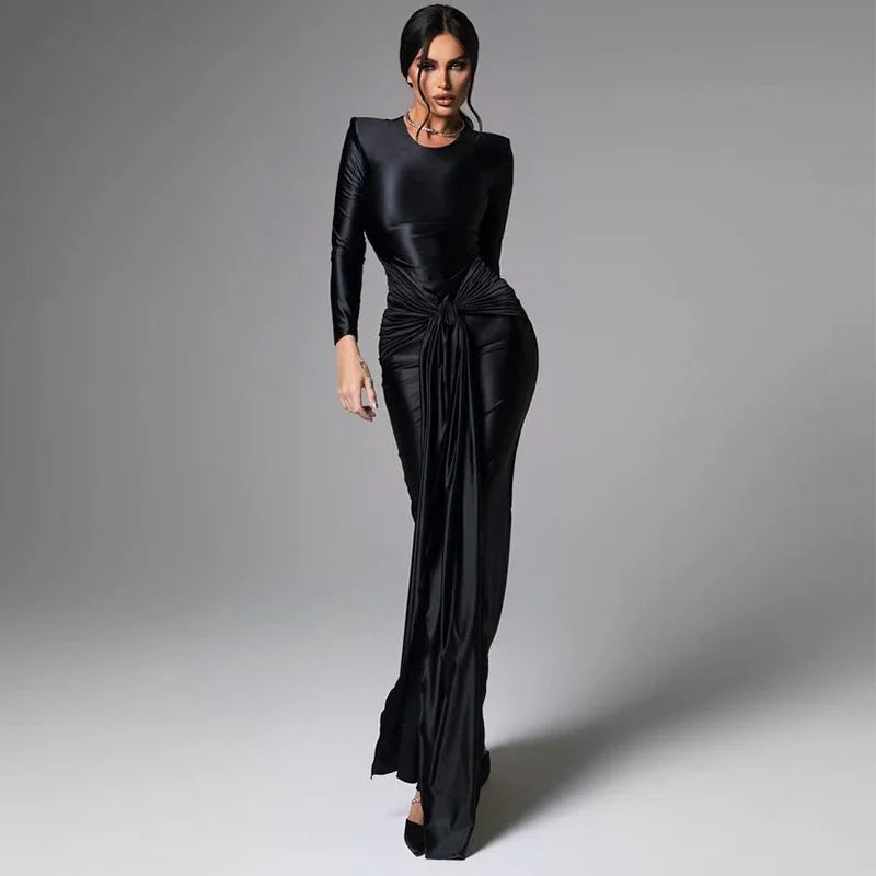 Silk Fold Dresses For Women Fashion Sexy Streetwear Solid Full Sleeves O-Neck Bodycone Party Elegant Long Vestidos Robes Female