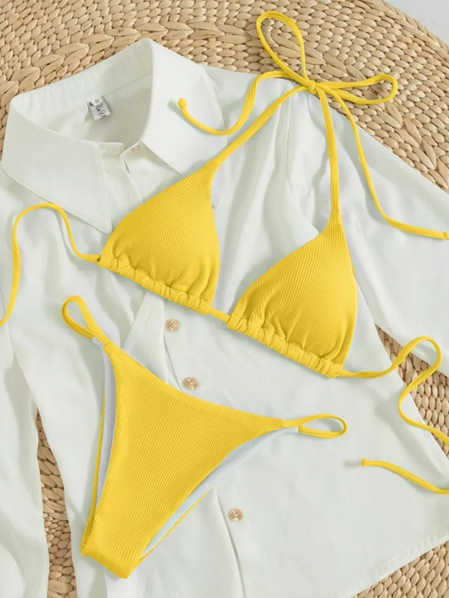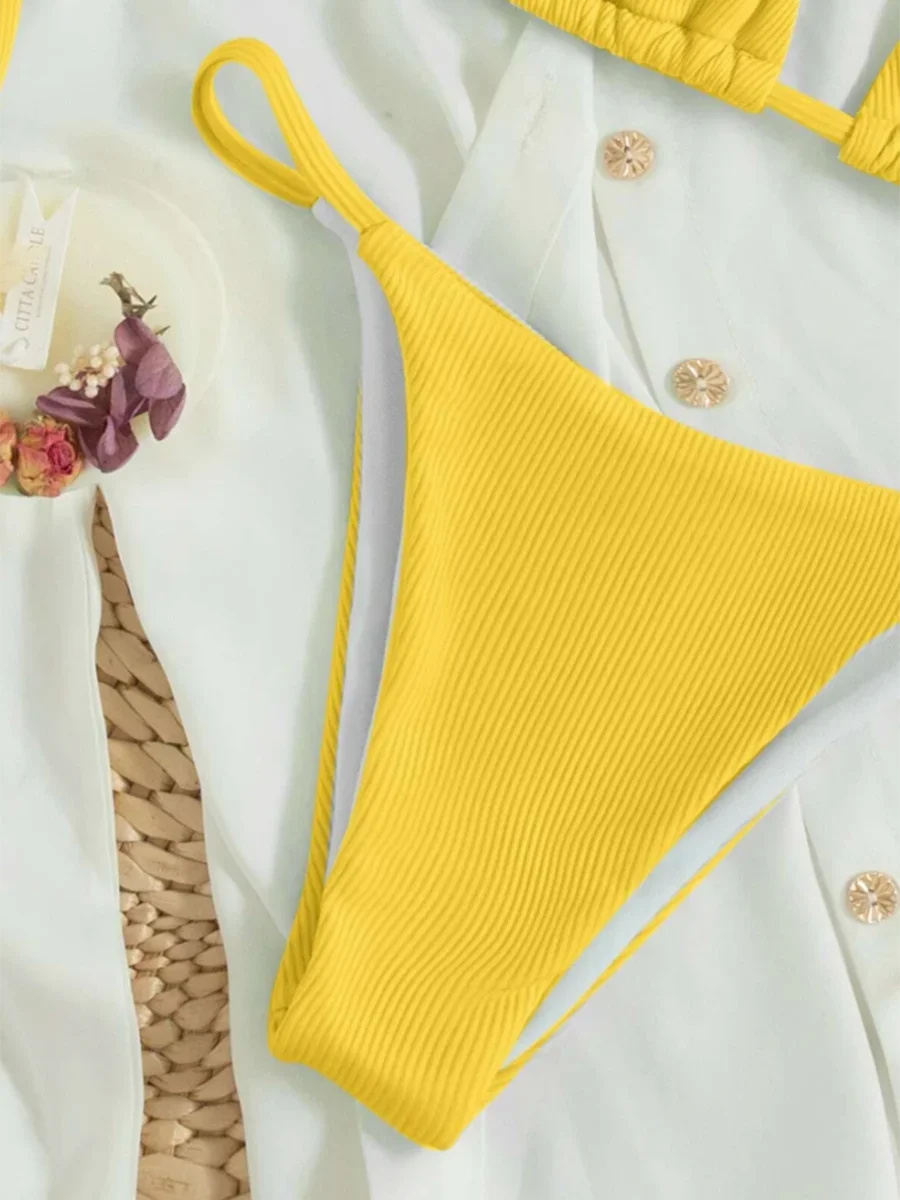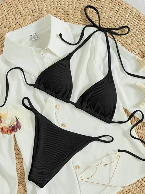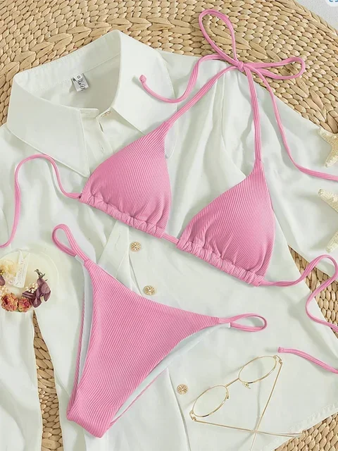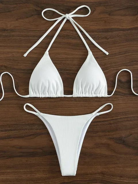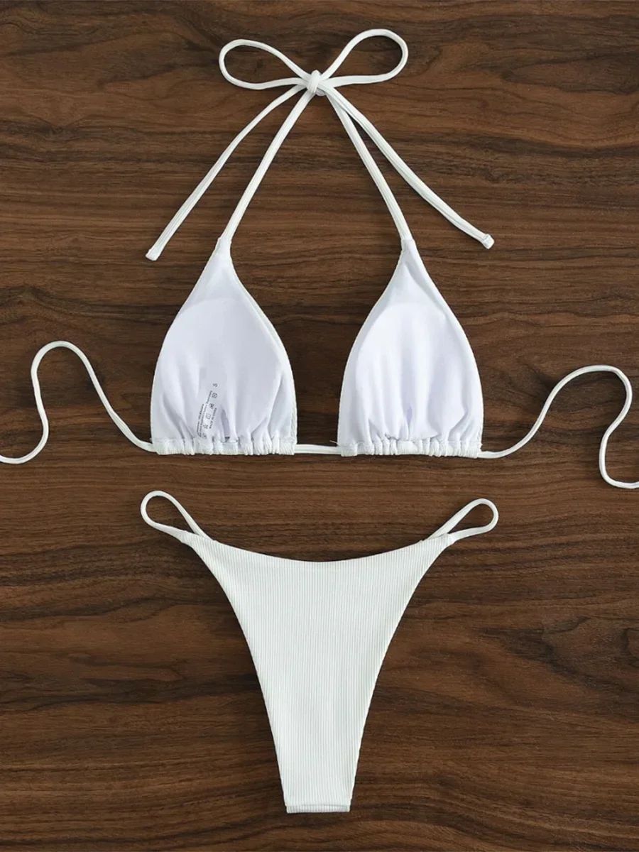 String Bikinis 2024 Women Sexy Triangle Swimsuit Solid White Swimwear Female Padded Bathers Bathing Swimming Swim Suit Beachwear