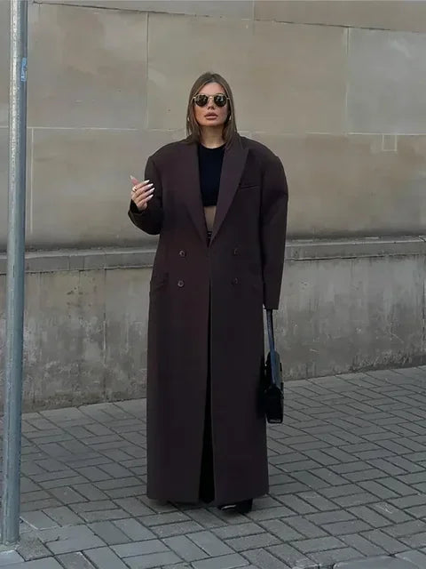 Chic Classic Lapel Woolen Overcoat For Women Elegant Double-breasted Long Sleeve Oversized Coat 2024 Lady Fashion Fall Outerwear