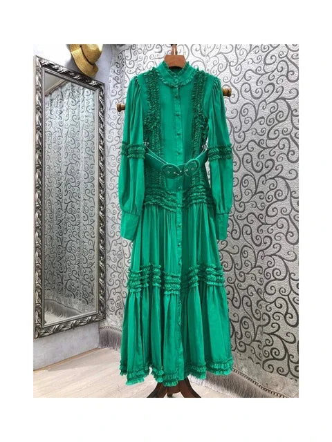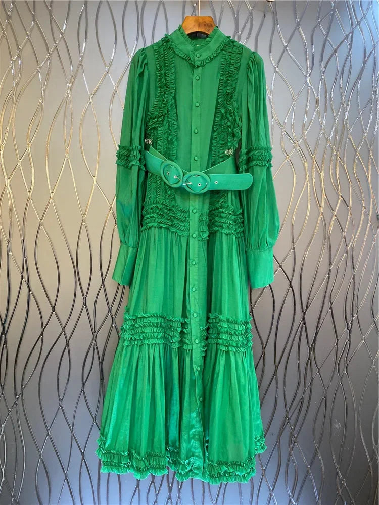 plus High Quality Fashion 2024 Women's Long Sleeve Cascading Ruffles Belted Holiday Long Dress with Camis