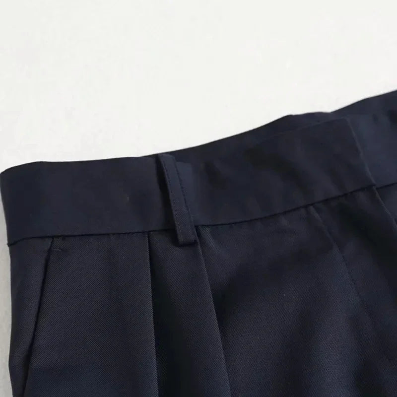 Maxdutti summer england solid simple navy shorts women color straight suits short feminino bermuda Cropped trousers