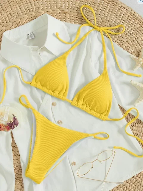 String Bikinis 2024 Women Sexy Triangle Swimsuit Solid White Swimwear Female Padded Bathers Bathing Swimming Swim Suit Beachwear