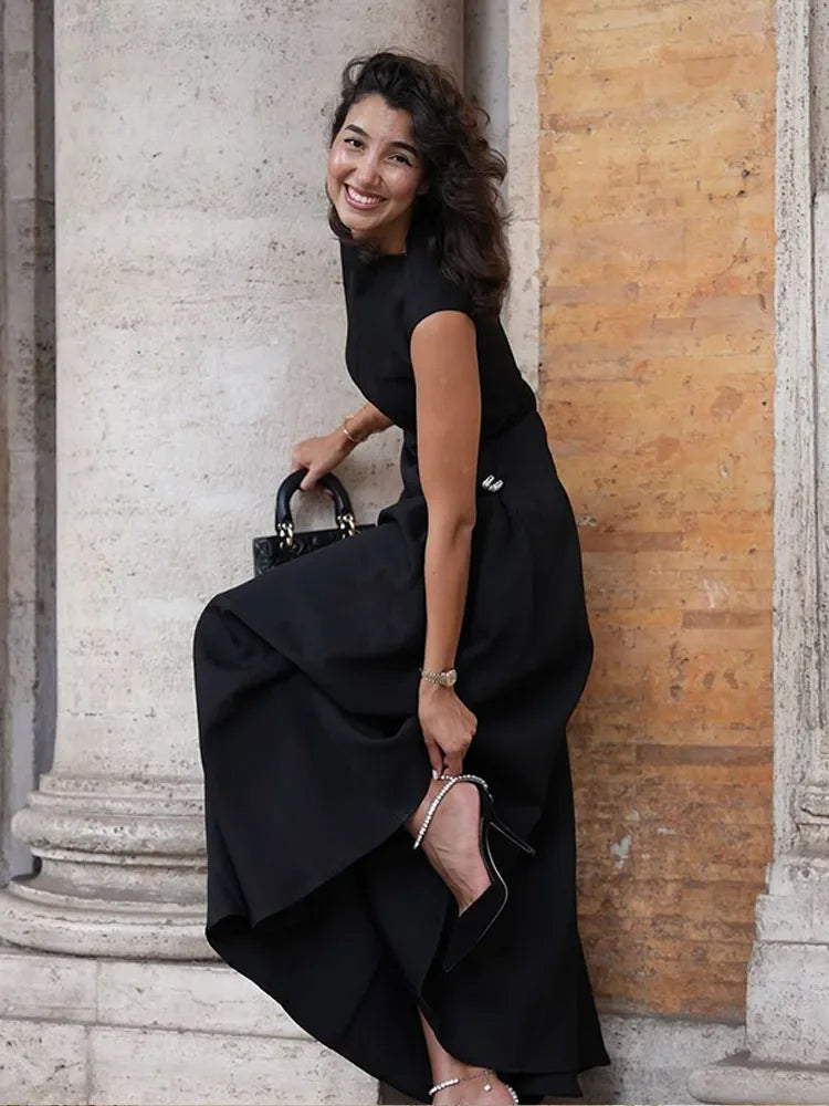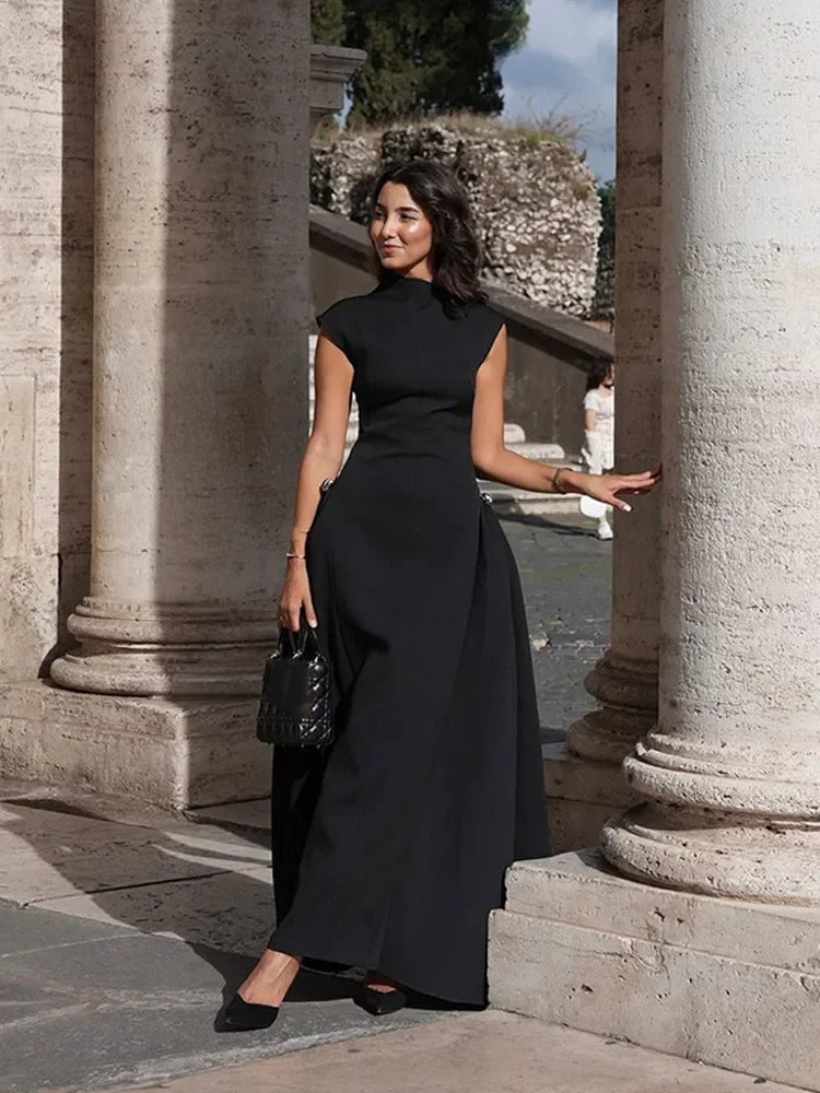 minus Women Pleated Oblique Collar A-line Dress Elegant Fashion Sleeveless Slim Long Dresses 2024 New Solid Color Evening Party Gowns